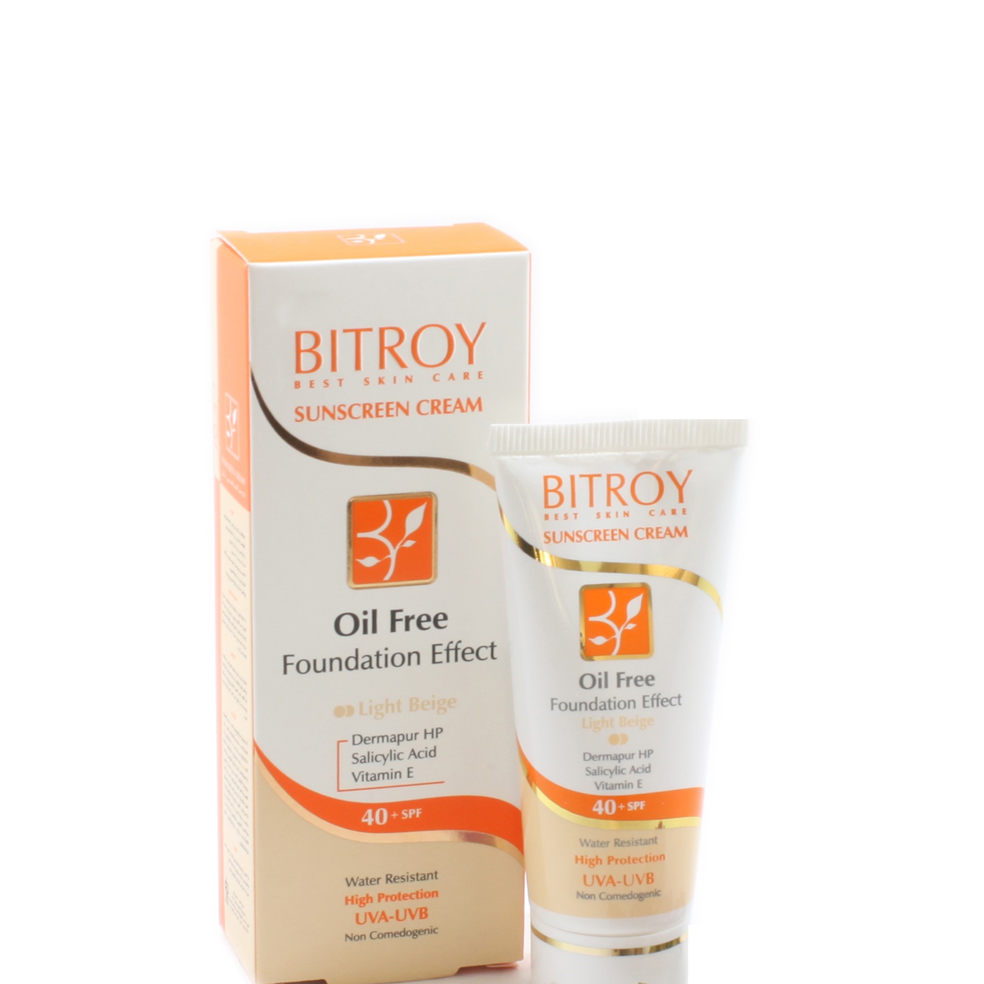 کرم ضدآفتاب فاقد چربی بژ روشن SPF40 بیتروی که محافظت بالا از پوست در برابر اشعههای مضر خورشید مانند اشعههای UVB و UVA است. مقدار SPF بالا برای پوستهای بسیار حساس و آسیبپذیر مناسب است و اگر پوستی معمولی دارید بهتر است از SPFهای پایینتر استفاده کنید.کرم ضدآفتاب فاقد چربی بژ روشن SPF40 بیتروی ۵۰ حجم دارد که تامدتی نهچندان کوتاه میتوان آن را مورداستفاده قرار داد. این کرم ضد آفتاب دارای رنگ بژ روشن است است. بیتروی برای افراد با پوست چرب و حساس قابل استفاده است. کرم ضدآفتاب بیتروی خاصیت ضدمیکروبی دارد که از ایجاد آکنه و جوشهای میکروبی بر روی پوست جلوگیری کرده و چربی پوست را در حالتی متعادل قرار میدهد. همچنین از ایجاد و تشدید آکنه و جوشهای موجود بر روی پوستهای چرب جلوگیری میکند.