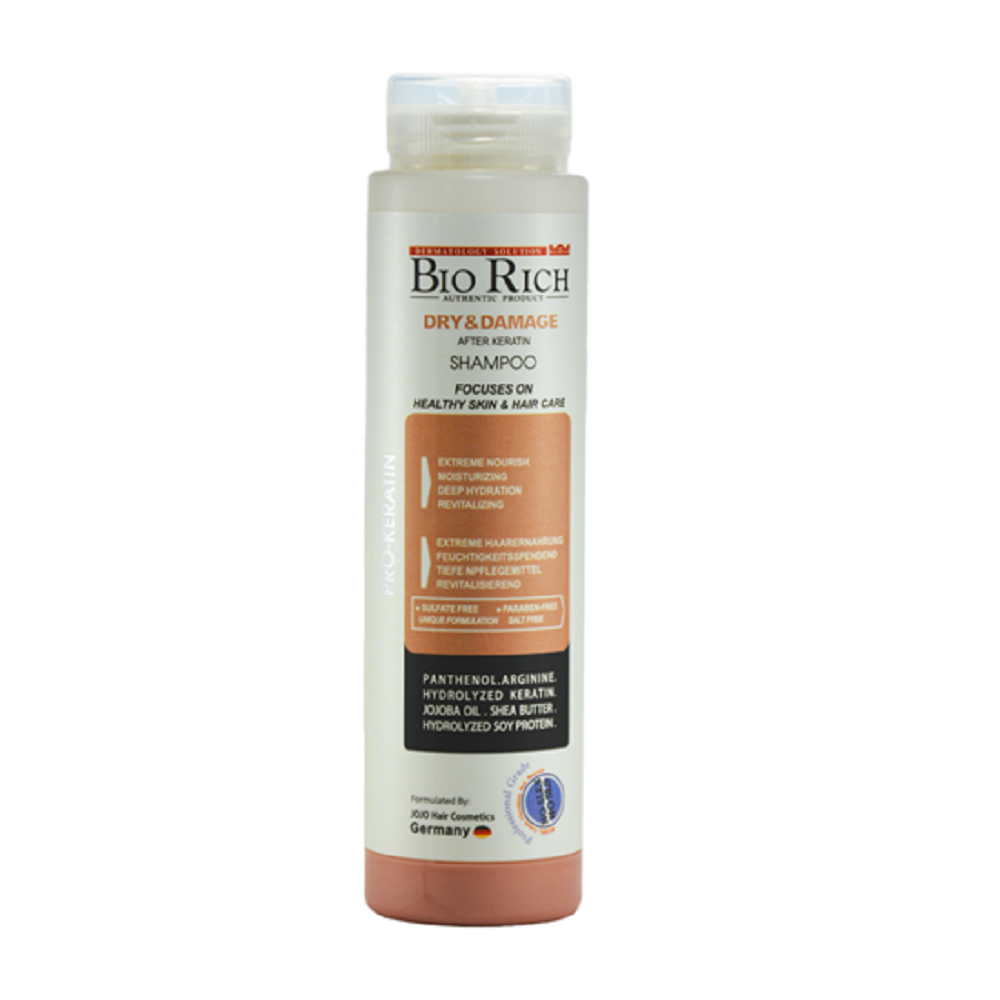 شامپو پروتئینه فاقد سولفات (پروکراتین) بایوریچ شامپو مخصوص موهای کراتینه ، پلاتینه ، ریباندینگ و دکلره شده شامپو ملایم حتی برای پوست سر بازسازی موهای آسیب دیده، خشک و رنگ شده رفع الکتریسیته و افزایش درخشندگی و حالت موی سر رطوبت دهنده مو و التیام بخش فاقد سولفات، نمک، پارابن و سیلیکون