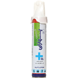 ماسک را به به سر بطری وصل کرده و با فشار دادن دکمه ماسک اکسیژن را اسپری کرده . این عمل را هر مرتبه به مدت 1 الی 2 ثانیه انجام داده و همزمان تنفس نمایید .