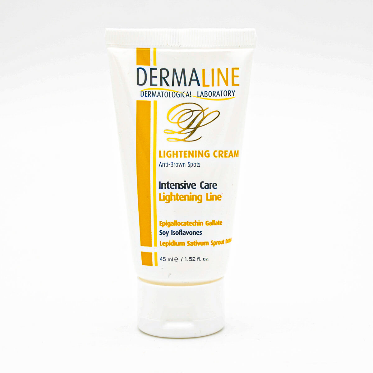 شماره مجوز بهداشت: 56/12248 DERMALINE Lightening Cream ساخت کشور: ایران با همکاری شرکت SEPPIC فرانسه و موسسه تحقیقات صنعتی بیوتکنولوژی KFG باعث از بین رفتن لک های ناشی از دوران بارداری، مصرف قرص های ضد بارداری، بیماری های پوستی، آفتاب، افزایش سن، جای جوش، لیزر و پیلینگ می گردد.